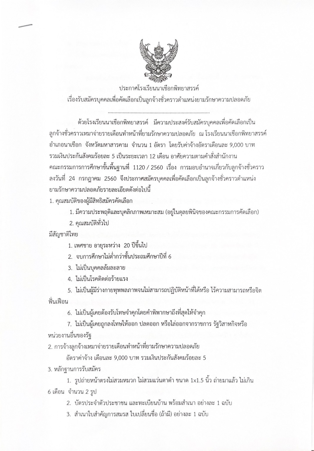 รับสมัครบุคคลเพื่อคัดเลือกเป็นลูกจ้างชั่วคราว ตำแหน่งยามรักษาความปลอดภัย
