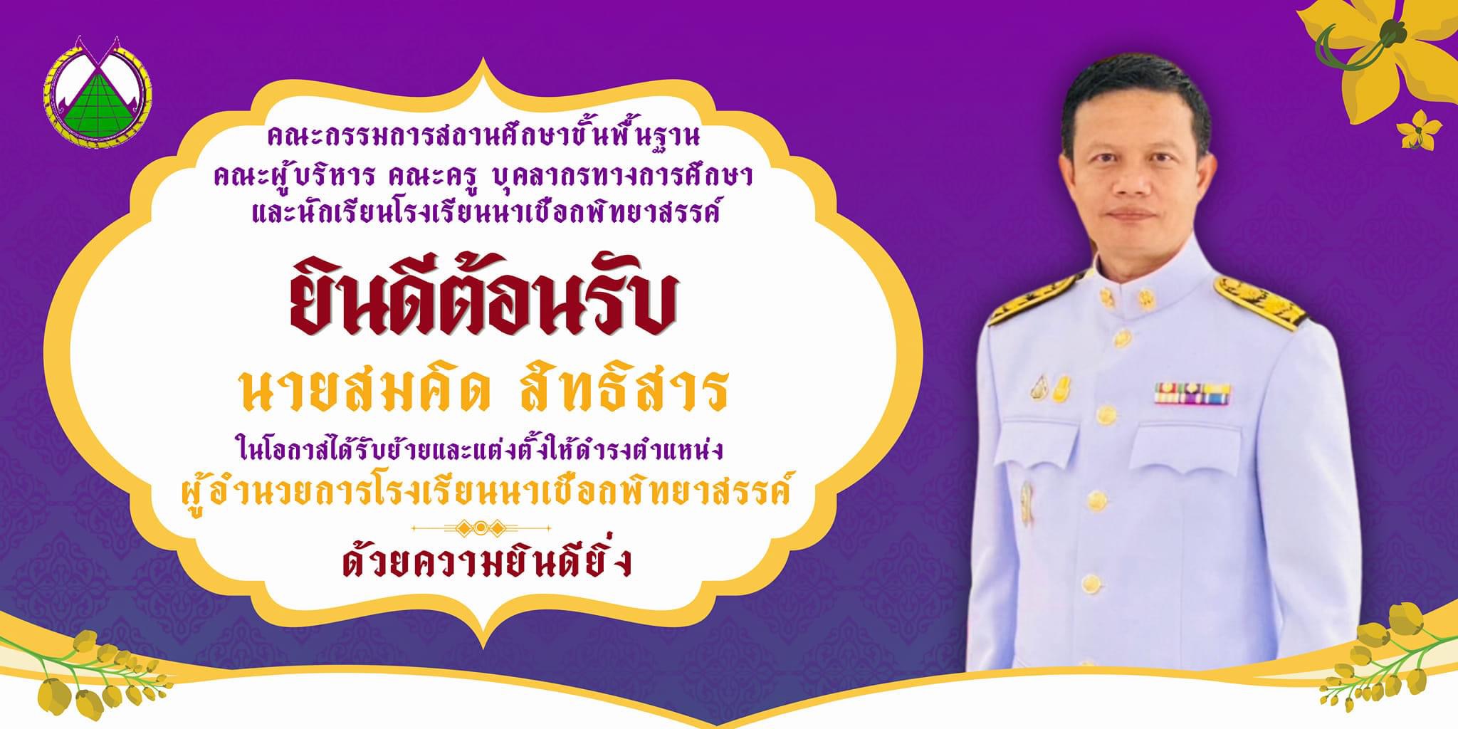 ในโอกาสได้รับย้ายและแต่งตั้งให้ดำรงตำแหน่งผู้อำนวยการโรงเรียนนาเชือกพิทยาสรรค์ ด้วยความยินดียิ่ง