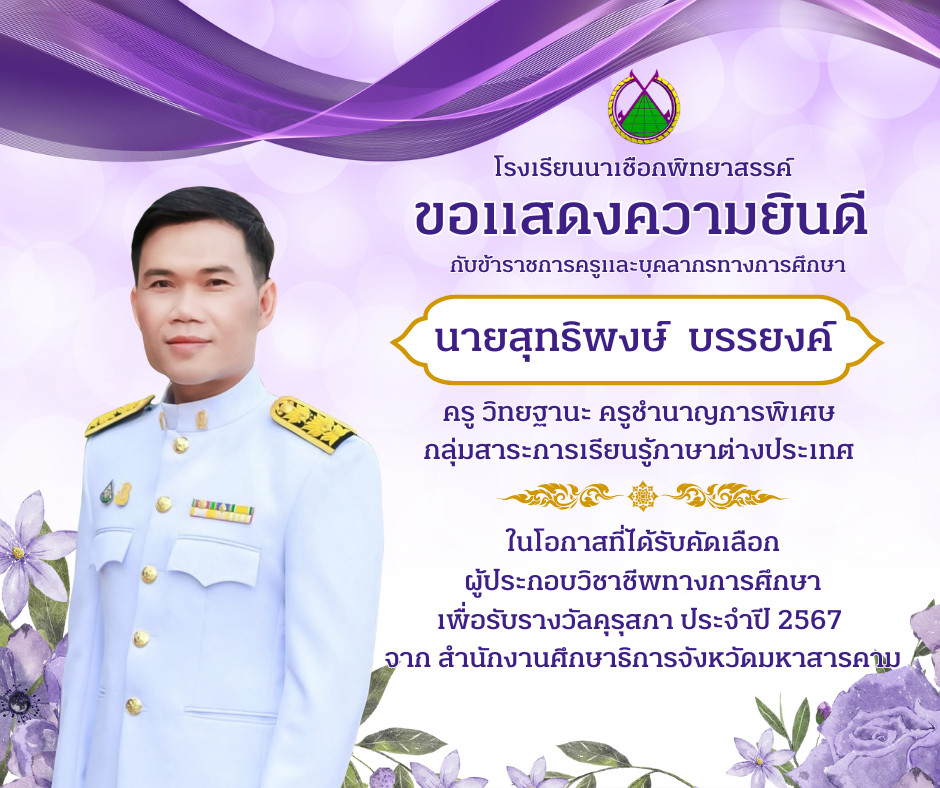 ขอแสดงความยินดี คุณครูสุทธิพงษ์ บรรยงค์