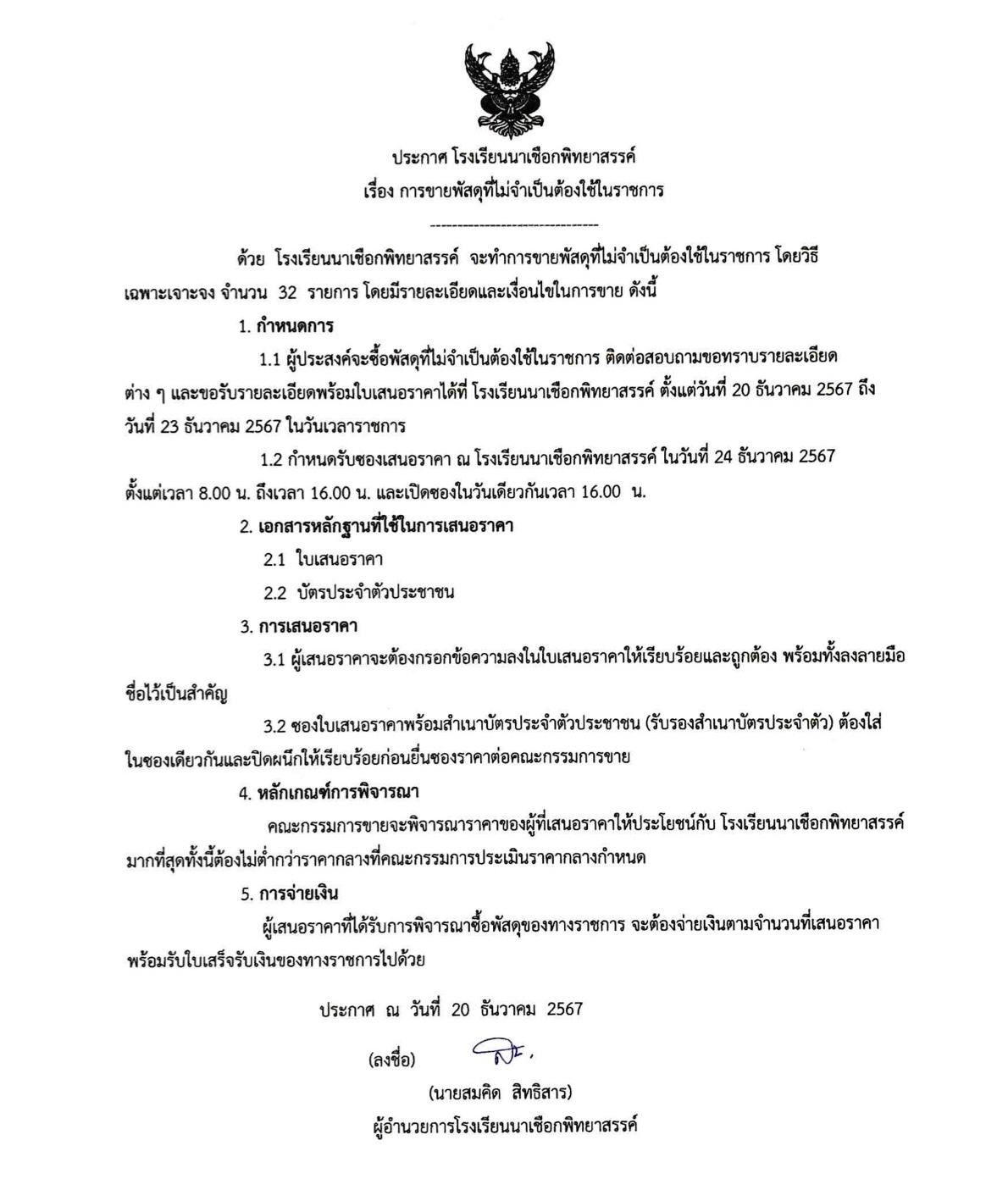 ประกาศ การขายพัสดุที่ไม่จำเป็นต้องใช้ในราชการ