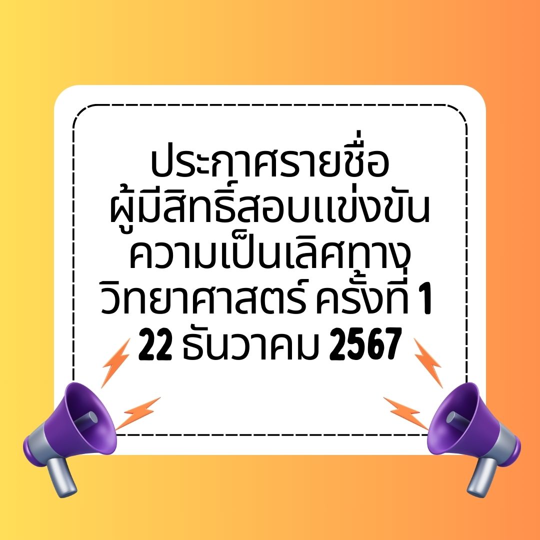 ประกาศรายชื่อผู้มีสิทธิ์สอบแข่งขันความเป็นเลิศทางวิทยาศาสตร์ ครั้งที่ 1 วันที่ 22 ธันวาคม 2567