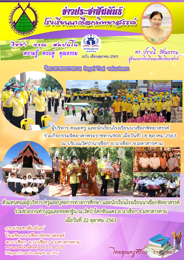 โรงเรียนนาเชือกพิทยาสรรค์ร่วมทำบุญกฐิน ที่วัดป่าโคกดินแดง อ.นาเชือก จ.มหาสารคาม