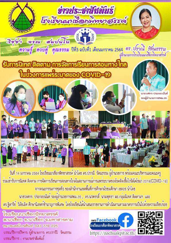โรงเรียนนาเชือกพิทยาสรรค์รับการนิเทศติดตาม จาก สพม.26 ในการจัดการเรียนการสอนทางไกลภายใต้สถานการณ์การแพร่ระบาด covid-19