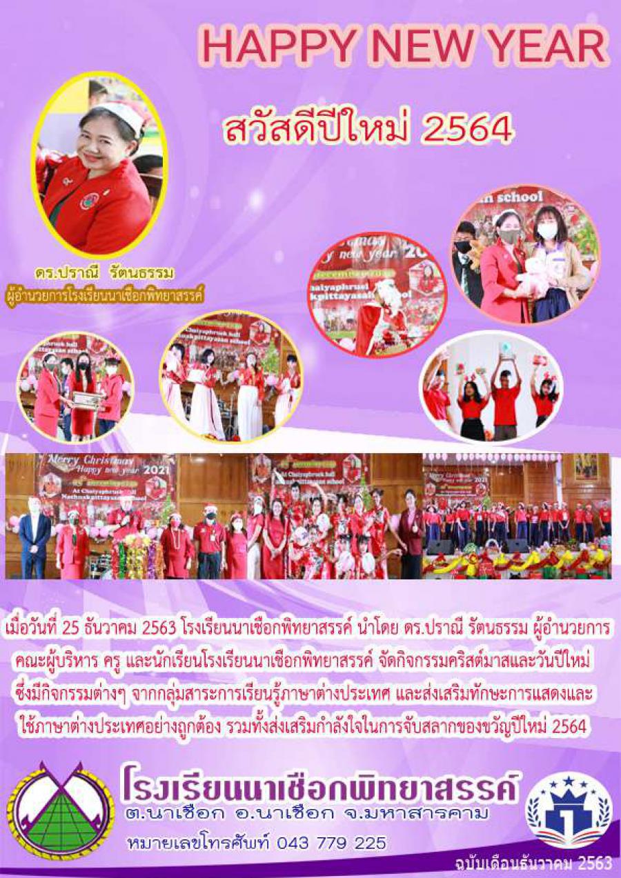 โรงเรียนนาเชือกพิทยาสรรค์ นำโดยกลุ่มสาระการเรียนรู้ภาษาต่างประเทศ จัดกิจกรรมวันคริสต์มาสและต้อนรับปีใหม่2564