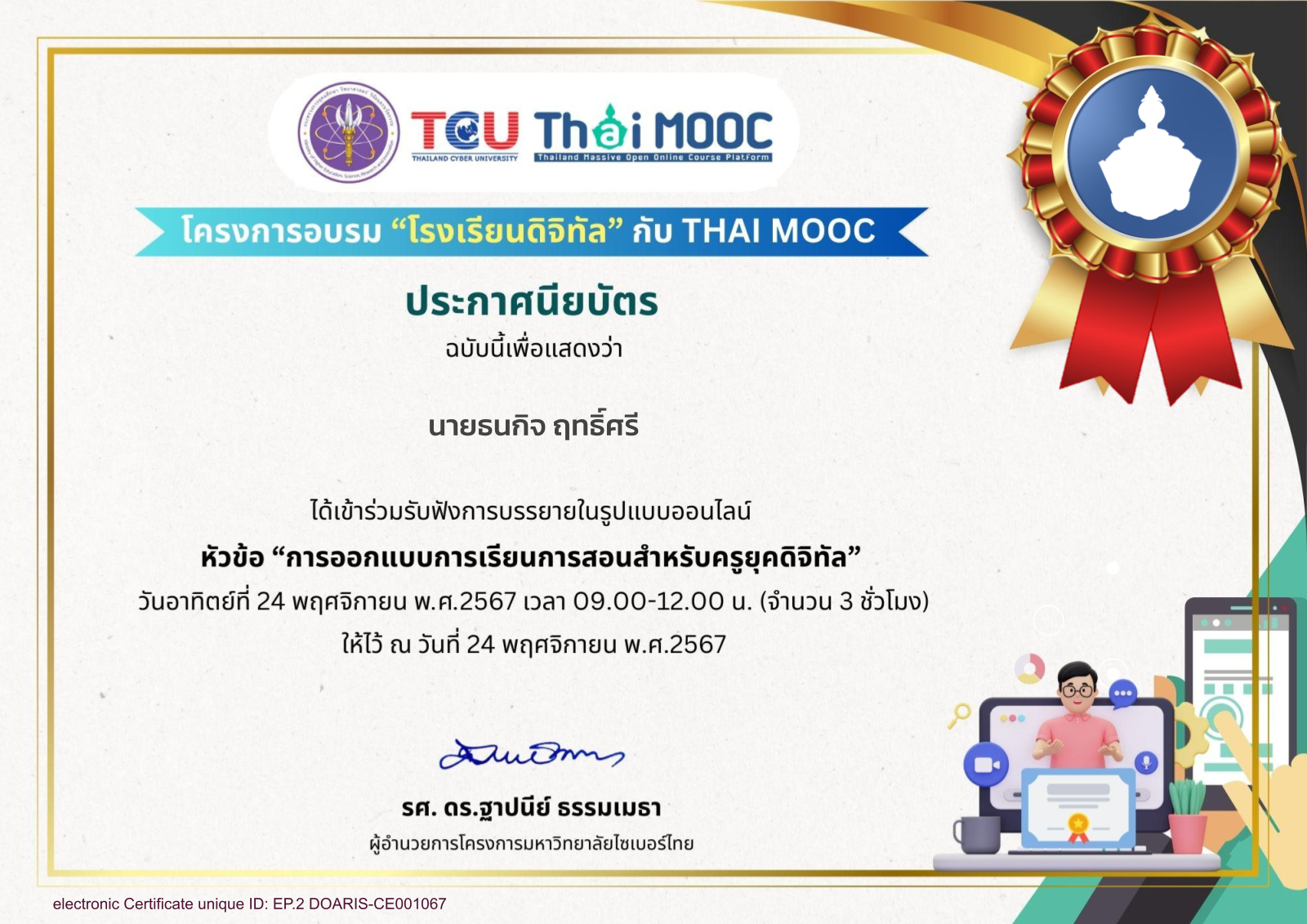 วุฒิบัตรอบรมหลักสูตรพัฒนาสมรรถนะดิจิทัลระดับพื้นฐาน (Basic Digital Competency) ด้วยระบบ E-Learning) |