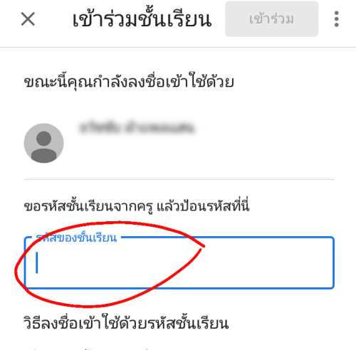3. ทำการเข้าร่วมชั้นเรียน (join class) โดยใช้รหัสต่อไปนี้