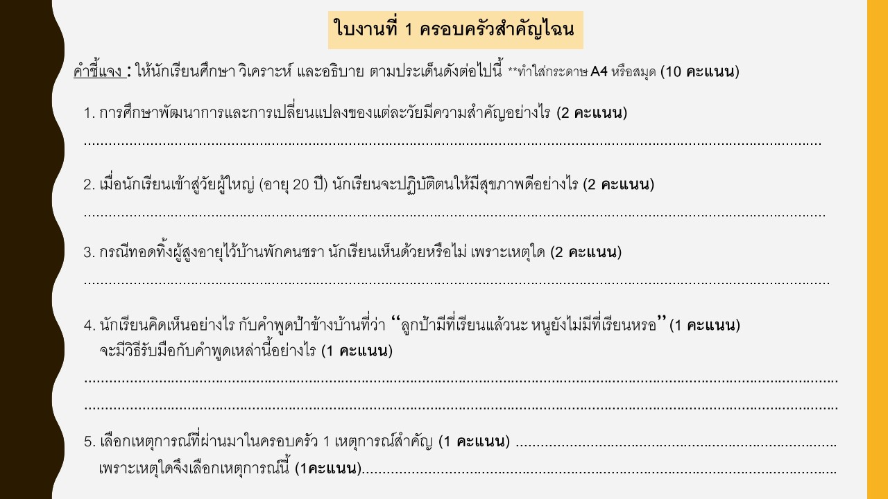 บทเรียนที่ 1 วัยและการเปลี่ยนแปลง