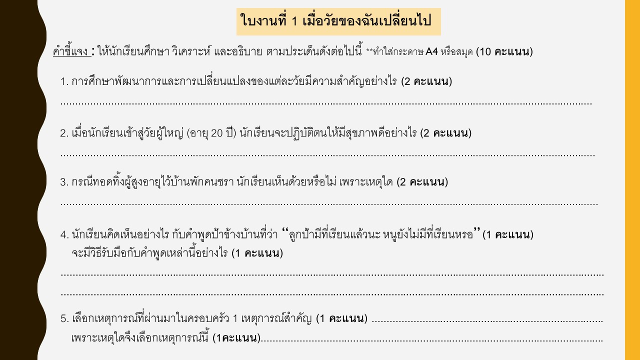 บทเรียนที่ 1 การเจริญเติบโตและพัฒนาการของวัยรุ่น